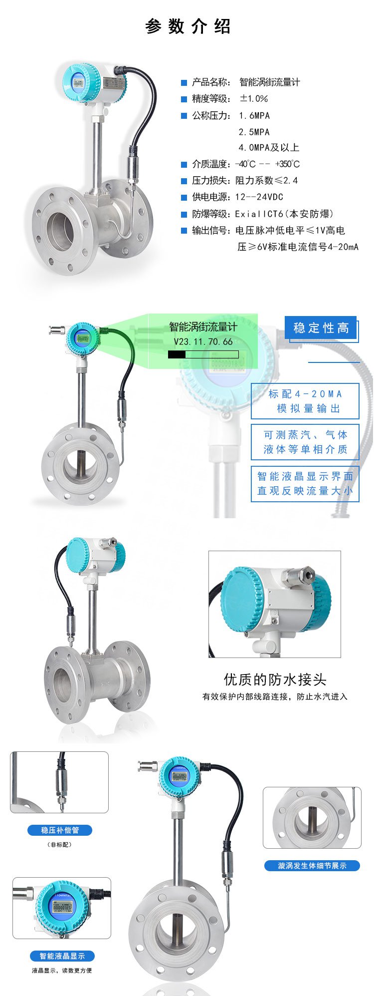 渦街流量計是根據卡門渦街原理研究生產的測量氣體、蒸汽或液體的體積流量、標況的體積流量或質量流量的體積流量計。多年研究生產經驗的基礎上進行精心設計的產品,實現了產品智能化、標準化、系列化、通用化、生產模具化、確保產品質量的美觀性。