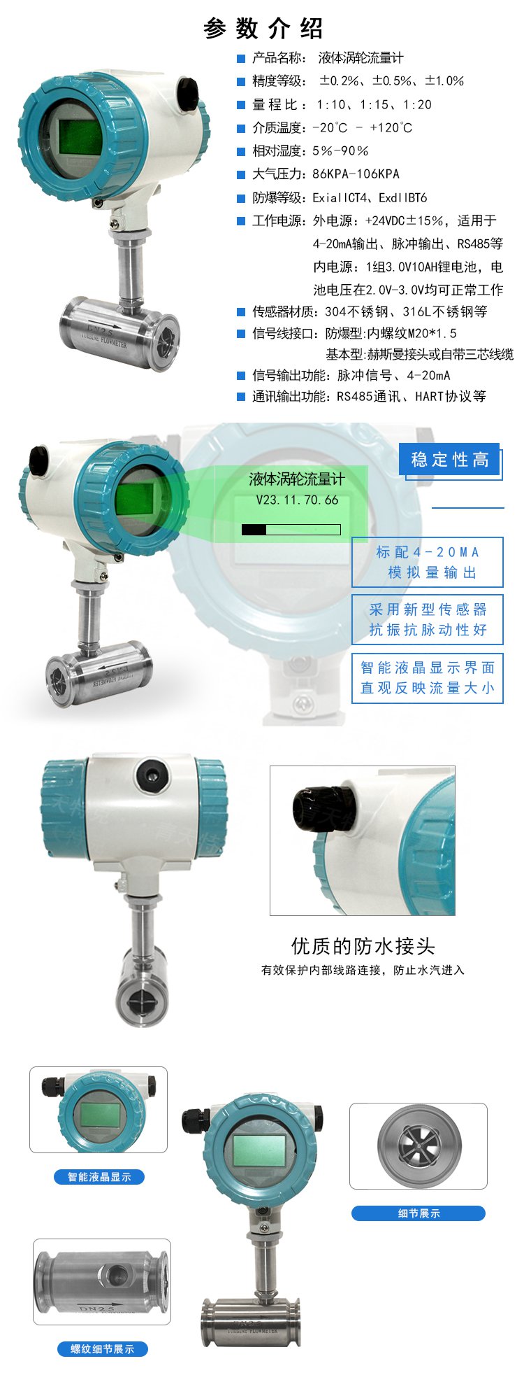 卡箍式液體渦輪流量計(jì),安裝維護(hù)方便快捷。精度高,重復(fù)性好,壽命長(zhǎng)操作簡(jiǎn)單等特點(diǎn)。